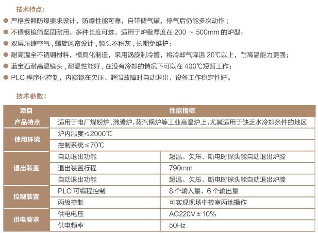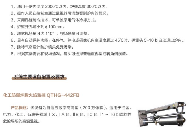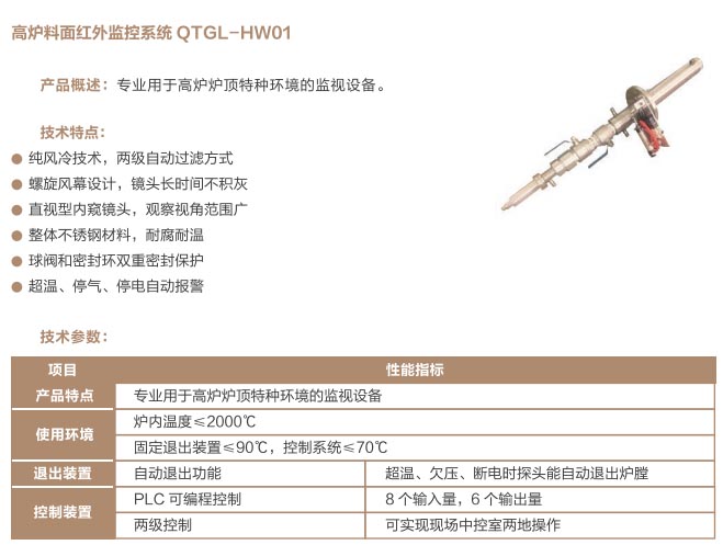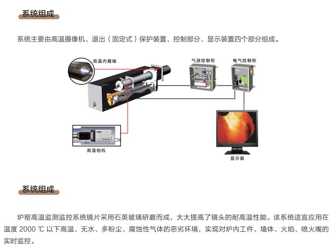 爐窯高溫監(jiān)測監(jiān)控系統(tǒng)是專為工業(yè)高溫爐窯監(jiān)測監(jiān)控的設(shè)計的智慧管理平臺,是針對爐壁開孔和爐窯視像有嚴格要求的高溫爐窯而研制的高溫工業(yè)電視。利用特種高溫孔式光學(xué)鏡頭,鏡頭設(shè)計采用中繼物鏡,兩次成像系統(tǒng),使像面在遠離觀察孔的CCD靶面上形成,最大限度的減少進入攝像機的熱輻射,致力為冶金、電力、建材、礦山、化工等行業(yè)服務(wù)。我公司研發(fā)主導(dǎo)產(chǎn)品已擁有第三代SG內(nèi)窺式高溫工業(yè)電視系列、爐壁式高溫工業(yè)電視系列、內(nèi)窺式拐角高溫工業(yè)電視系列、鍋爐汽包水位電視系統(tǒng)等成套設(shè)備,以及各種風(fēng)冷防護罩,水冷防護罩,渦旋制冷防護罩等工業(yè)監(jiān)控設(shè)備配套產(chǎn)品。產(chǎn)品廣泛應(yīng)用于鋼鐵廠加熱爐、退火爐,電廠鍋爐爐膛火焰、水泥廠回轉(zhuǎn)窯窯頭看火、篦冷機看料、玻璃廠玻璃熔窯等特殊高溫環(huán)境。幫助用戶進行工業(yè)爐實時電視監(jiān)測及控制,解決設(shè)備的運行故障等,對用戶改善產(chǎn)品質(zhì)量、降低成本、安全生產(chǎn)有著獨特的成效。受到了用戶的一致好評。