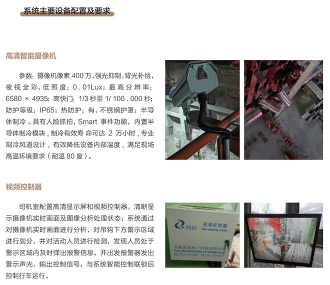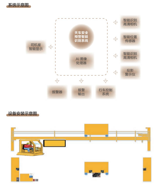 6、行車智控系統(tǒng):控制系統(tǒng)采用一體化模塊集成設(shè)計(jì), 通過各子系統(tǒng)信號(hào)采集及圖像分析進(jìn) 行智能處理,快速準(zhǔn)確判斷各功能模 塊的異,F(xiàn)象,與主機(jī)PLC控制系統(tǒng) 通訊連接具備自動(dòng)進(jìn)行報(bào)警、減速、斷電停車等功能,當(dāng)系統(tǒng)確認(rèn)發(fā)出信號(hào)指令后,控制系統(tǒng)和行車PLC連鎖進(jìn)行斷電處理,避免事故發(fā)生。